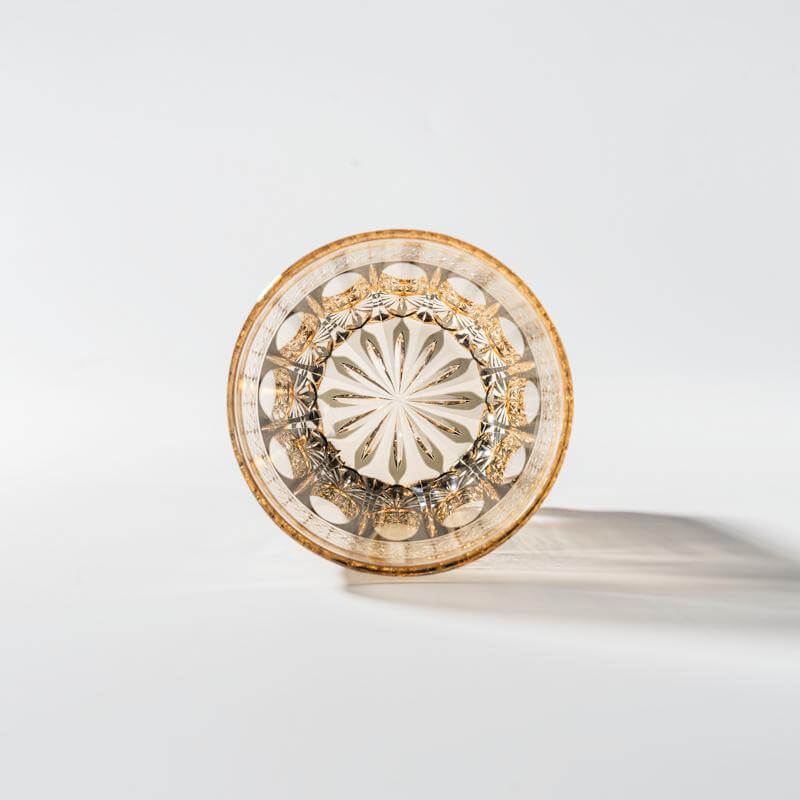 Experience the elegance of traditional Edo-Kiriko craftsmanship in this beautifully hand-cut glass. Each piece is made entirely by hand, showcasing intricate patterns and a warm amber glow that catches the light with every movement.