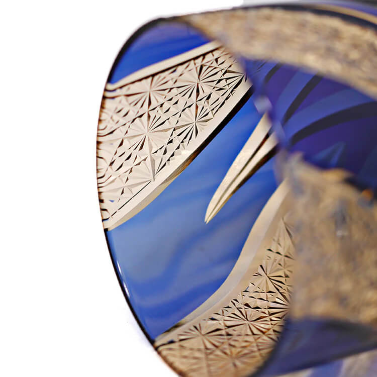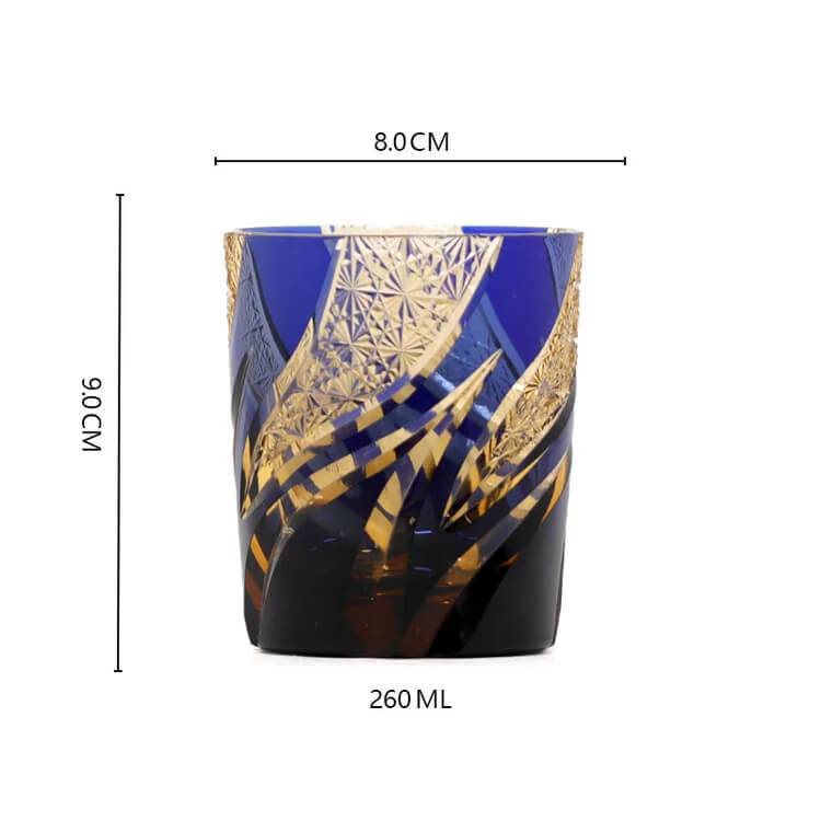 Experience the brilliance of traditional Japanese craftsmanship with the Blue Flame Edo Kiriko whiskey glass. Hand-cut by skilled artisans, this piece features deep cobalt blue crystal accented with dynamic flame-like patterns that shine vividly under light. The precise cuts, balanced weight, and smooth rim create an elegant drinking experience, whether you are enjoying whiskey, bourbon, or showcasing it as a collectible art piece. A perfect fusion of color, craftsmanship, and modern luxury.