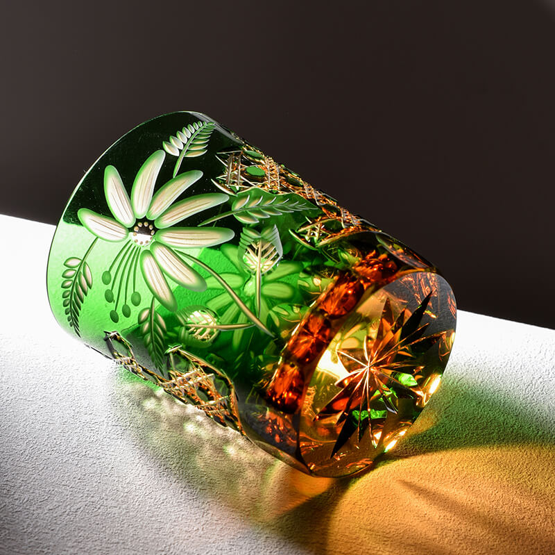 🌿 Style: Bohemian hand-carved crystal🎨 Color: Emerald green🔬 Material: Lead-free crystal glass🎋 Craft: Pure hand-carved floral pattern✏️ Size: □ 82mm × Height 85mm🍵 Capacity: 400ml🎁 Includes: Handcrafted wooden gift box
