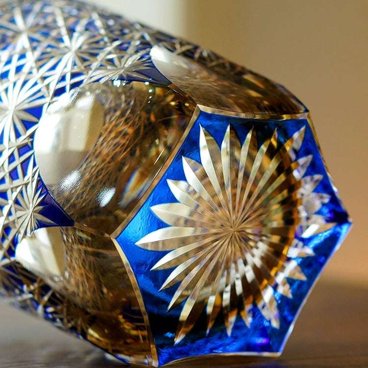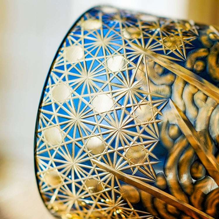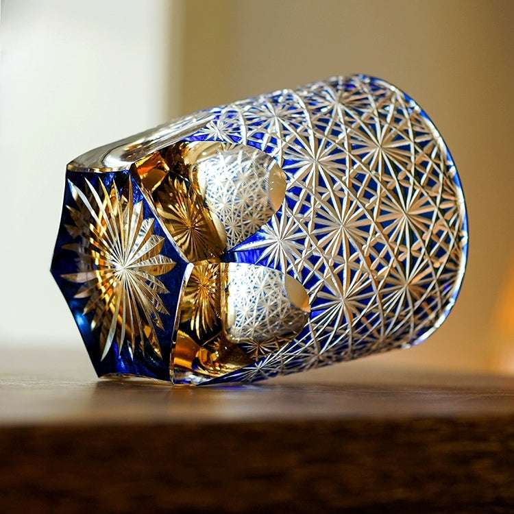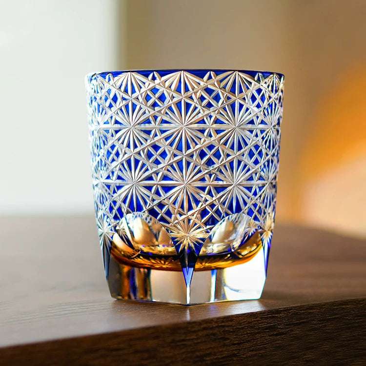 Delve into the world of Japanese artistry with our exquisite range of Edo Kiriko Handcrafted Blue Amber Whisky Glasses. Drawing from the traditional Edo Kiriko glass cutting techniques, our collection showcases two captivating patterns: the intricate Star Chrysanthemum, symbolizing beauty, rejuvenation, and longevity; and the enchanting Starry Sea, representing dreams, mystery, and the infinite universe.