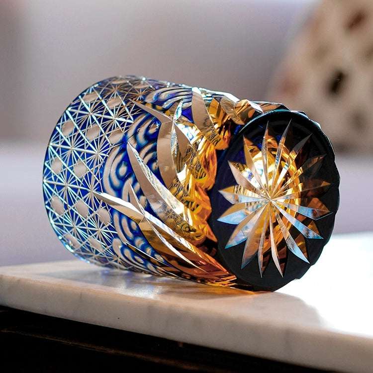 A harmonious blend of tradition, contemporary design, and imagination, these glasses are a testament to the timeless appeal of Japanese craftsmanship and the wonders of nature. Elevate your whisky experience and dive into a world of stories, dreams, and artistry with the Edo Kiriko Handcrafted Blue Amber Whisky Glasses.