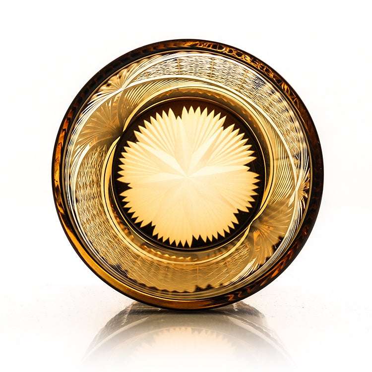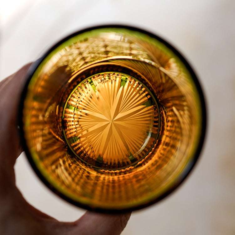 Each glass is handcrafted by skilled artisans, ensuring every detail is impeccable. The glass's amber hue captures the essence of a setting sun, adding a touch of elegance and warmth to your drink. Its sturdy design is not only beautiful; it also provides a comfortable grip for a refined drinking experience.