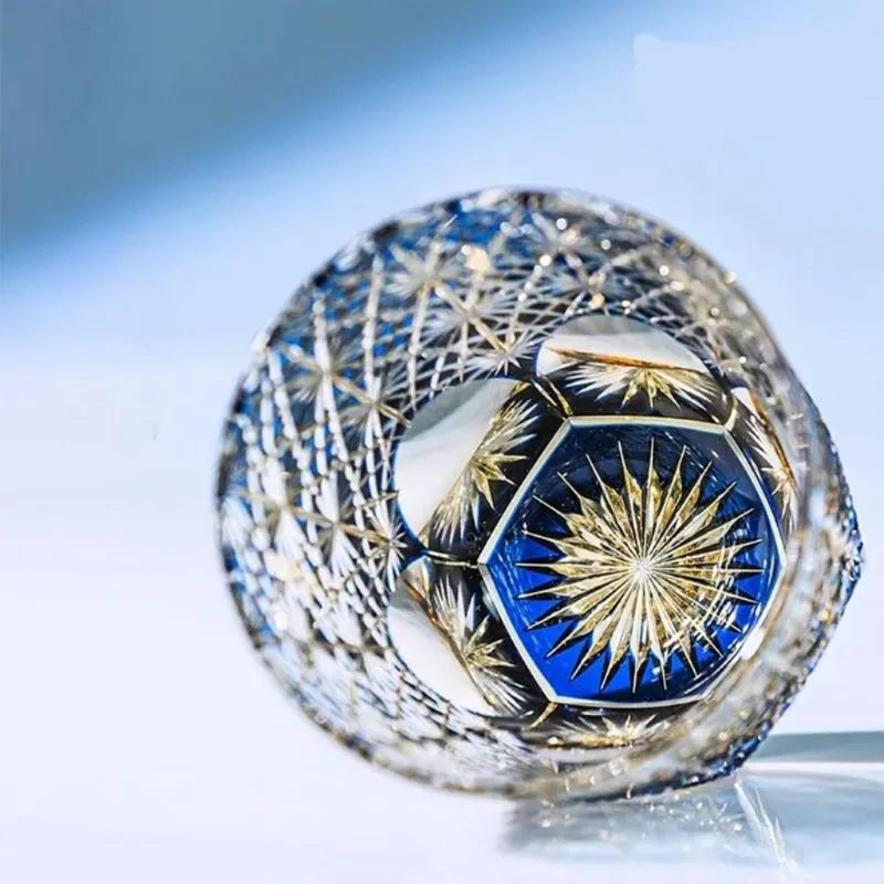 Immerse yourself in the deep, calming hues of our Blue Starburst Edo Kiriko Whiskey Glass. Inspired by the traditional Japanese "Starburst" pattern, this hand-cut crystal glass captures the brilliance of light in every facet. It is meticulously designed for serving spirits neat, on the rocks, or elevating your favorite Old Fashioned cocktail.